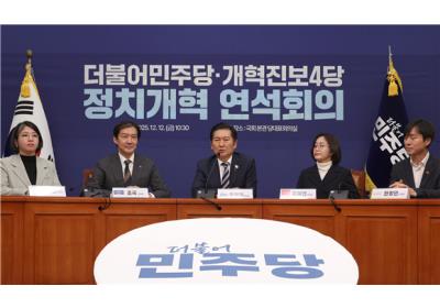 메뉴설정 홈 > 정치 > 정당 통일교 쇼크에 '부산 초비상'…급기야 '조국 등판론' 2025.12.12 17:30 '통일교 파문'의 여파로 전재수 전 해양수산부 장관이 사퇴하면서 내년 6월 부산시장 선거 구도에도 상당한 파장이 예상됩니다. 전 전 장관은 부산 지역의 유일한 민주당 현역 의원... '세계경주포럼' 자문위 위촉…함성득·정종섭·김재수 공동위원장 2025.12.12 17:14 경상북도와 경주시가 아시아태평양경제협력체(APEC) 정상회의 후속 사업으로 '세계경주포럼'을 구성하고 함성득 경기대 정치전문대학원장, 정종섭 한국국학진흥원장, 김재수 경북... 정청래 만난 조국 "대선 전 합의문 이행"…'교섭단체 완화' 재차 압박 2025.12.12 16:39 조국 조국혁신당 대표가 정청래 민주당 대표를 만나 지난 대선 과정에서 합의한 정치 개혁 과제를 이행하라고 압박했습니다. 민주당이 야 4당(조국혁신당·진보당·기본소득당·... 민주, 통일교 의혹에 "근거 나오면 '가차 없이' 처리" 2025.12.12 12:08 민주당이 12일 여권 내 일부 인사들의 통일교 연루 의혹에 대해 "당 소속 의원들과 내부 당원들이 관련됐다는 근거가 명확하게 제시되면 이재명 대통령 말씀대로 지위 고하를 막론... "국민 삶 볼모로 잡지 말라"…민주당 의원들, '국힘 필버' 규탄 2025.12.11 18:27 민주당 의원들이 11일 국회 본회의에서 법안 통과 저지를 위해 필리버스터(무제한 토론)에 돌입한 국민의힘을 향해 "국민의 삶을 볼모로 잡는 비겁한 행태를 즉각 중단하라"고 목소리... 지선·전대에 통일교 파문까지…개각 불가피 2025.12.11 18:01 '통일교 금품 수수 의혹'이 여권을 강타하면서 정부의 개각 시계도 빨라질 전망입니다. 당초 내년 6월 지방선거에 출마하는 장관급 인사들의 이탈로 연말·연초 개각이 단행될 것... "이재명정부 확실한 파트너"…안호영 의원, 전북도지사 출사표 2025.12.11 17:54 국회 기후에너지환경노동위원장인 안호영 민주당 의원(3선, 전북 완주·진안·무주군)이 11일 전북특별자치도지사 선거에 출사표를 던졌습니다. 국회 기후에너지환경노동위원장인... 박주민, 서울시장 출마선언…라이벌은 '정원오' 2025.12.11 17:47 박주민 민주당 의원이 11일 서울시장 출마를 공식 선언했습니다. 지난달 말 박홍근 의원에 이어 민주당에서 두 번째로 공식 출사표를 던졌는데요. 연말까지 민주당 현역 의원 중 추...  대통령도 몰랐다…'전재수·임종성'만 거론 2025.12.11 17:15 이재명 대통령이 '통일교 금품 수수 의혹'에 연루된 정치인 명단을 사전에 파악하지 못했던 것으로 전해졌습니다. 특검의 보고가 없었다는 뜻으로, '민주당 봐주기 편파 수사' 논란... 정동영 "윤영호와 10분 차담이 전부"…나경원 "저질 물타기 정치공작" 2025.12.11 15:06 통일교 금품 수수 의혹 의혹이 정치권을 뒤흔들고 있습니다. <뉴스토마토>가 단독 보도를 통해 공개한 5명은 관련 의혹을 전부 '부인'하고 있는데요. 특히 정동영 통일부 장관은...  '성추행 의혹' 장경태 법사위 사임 수순…보임자는 '미정' 2025.12.11 12:00 '성추행 의혹'을 받는 장경태 민주당 의원이 국회 법제사법위원회에서 '사임' 수순을 밟을 예정입니다. 다만 법사위로 상임위원회를 옮기고자 하는 여당 의원 물색에 난항을 겪고 있... 정동영, 통일교 연관 의혹에…"금품수수 보도는 허위" 2025.12.11 10:26 정동영 통일부 장관이 11일 "윤영호 전 통일교 세계본부장이 김건희 특검(특별검사 민중기)에서 진술한 금품 제공 정치인에 자신이 포함됐다는 보도는 허위"라고 주장했습니다. ... 한동훈 "이 대통령, 한학자 왜 만나려 했나…난 단호히 거부" 2025.12.11 09:46 한동훈 전 국민의힘 대표가 이재명 대통령을 향해 과거 민주당 대표 시절 한학자 통일교 총재와의 만남을 추진한 경위를 밝히라고 촉구했습니다. 한동훈 전 국민의힘 대표가 ... "장관직 내려놓고 조사받겠다"…전재수, 통일교 의혹 '부인'(종합) 2025.12.11 08:14 전재수 해양수산부 장관이 8일 세계평화통일가정연합(통일교)으로부터 금품을 받았다는 의혹을 전면 부인했습니다. 허위 사실임을 반드시 밝히겠다면서도 "해수부에 누가 되지 않... '통일교 의혹' 전재수 해수부 장관, 사의 표명(1보) 2025.12.11 06:58 전재수 해양수산부 장관이 11일 "해수부 장관직을 내려놓고 당당하게 (조사에) 응하는 것이 공직자로서 처신"이라며 장관직 사의를 표명했습니다. 인천김성은 기자 kse5865@etoma... 정원오 "이 대통령과 같은 '일잘러'…서울시장 출마 곧 결심" 2025.12.10 18:49 내년 서울시장 선거에서 여당의 유력 후보군으로 떠오르고 있는 정원오 성동구청장이 10일 "(이재명 대통령과) 같은 점으로 '일잘러'라는 소문이 있다"며 자신을 소개했습니다. 정 ...   장동혁 덮치는 '김옥균 프로젝트' 2025.12.10 18:00 장동혁(왼쪽) 국민의힘 대표와 송언석 원내대표가 지난 8일 오후 서울 여의도 국회에서 열린 의원총회 및 이재명 정권 독재악법 국민고발회에서 잠시 생각에 잠겨 있다. (사진뉴시... 국힘, 릴레이 천막농성 돌입…연말정국 '소용돌이' 2025.12.10 17:53 국민의힘이 '릴레이 천막 농성'에 돌입하며 대여 투쟁을 강화하고 있습니다. 국민의힘이 민주당이 추진하는 쟁점 법안 8개를 '악법'으로 규정하며 "입법 독주를 저지하겠다"