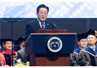 2026.02.23 09:55 이재명 대통령의 국정 수행 지지율이 4주 연속 상승하면서 60%에 달했습니다.  이재명 대통령이 20일 대전 유성구 카이스트(KAIST)에서 열린 학위수여식에서 축사를 하고 있...