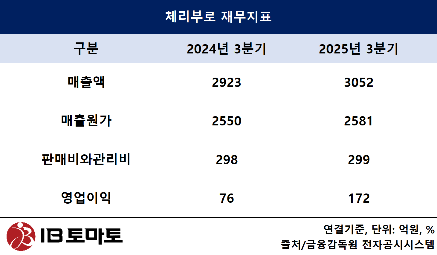 이와 관련, <IB토마토>는 체리부로 측에 고병원성 AI 리스크 대응 방안 등을 문의했으나 연락이 닿지 않았다.