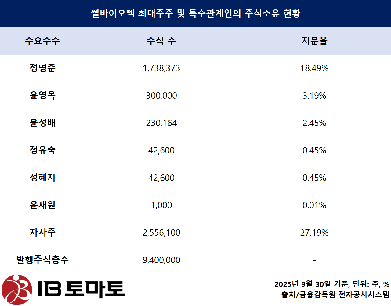 특히 지난 1995년 쎌바이오텍을 창업한 정 대표는 창업주로서 초기 자본금을 납입해 취득한 지분이 대부분일 것으로 추정, 정 대표 명의의 주식은 대부분 액면가(500원) 수준의 낮은 단가를 형성하고 있을 확률이 높아 보인다.