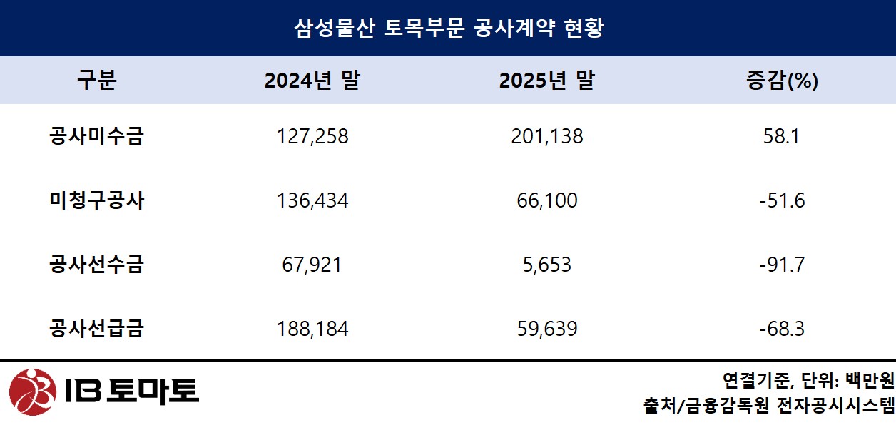 삼성물산 관계자는 <IB토마토>와의 통화에서 "최근 토목 부문 손익 변동은 일부 해외 프로젝트 영향으로, 국내 사업 구조와는 직접적인 관련은 없다"라며 "회사는 하이테크와 건축 중심의 포트폴리오를 유지하면서 토목은 해외 중심으로 선별적으로 접근하고 있다"고 설명했다.